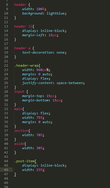 Блок section и Блок aside - в этих блоках мы задаем ширину разделов section и aside в 70 и 30 процентов соответственно