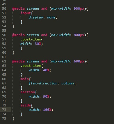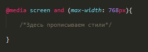 Теперь в фалйе css создадим правило медиазапроса. Выглядить оно будет вот так: